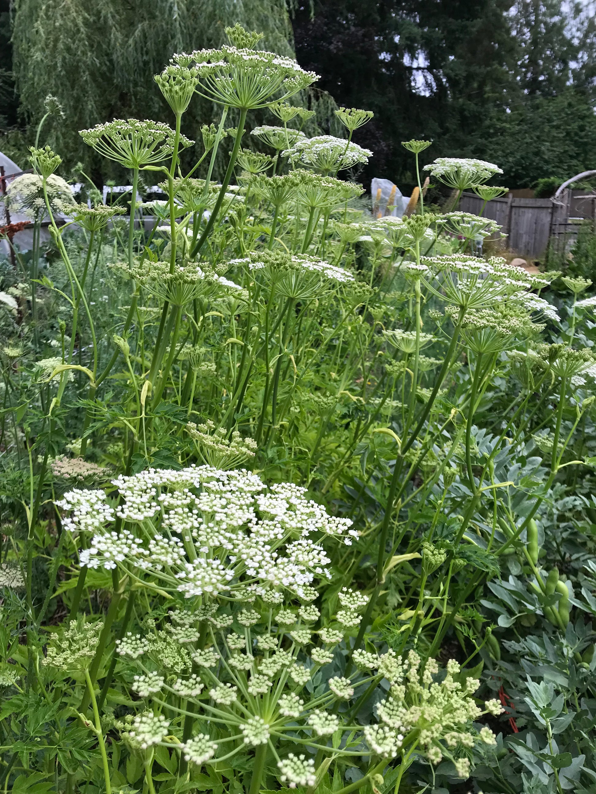 These plants can grow about 6 feet tall when in flower, and the umbelliferous flowers support all sorts of beneficial insects. Other names for this plant include Ulleung Giant Celery, Korean Pig Plant, sobadi, or dwaejipul.